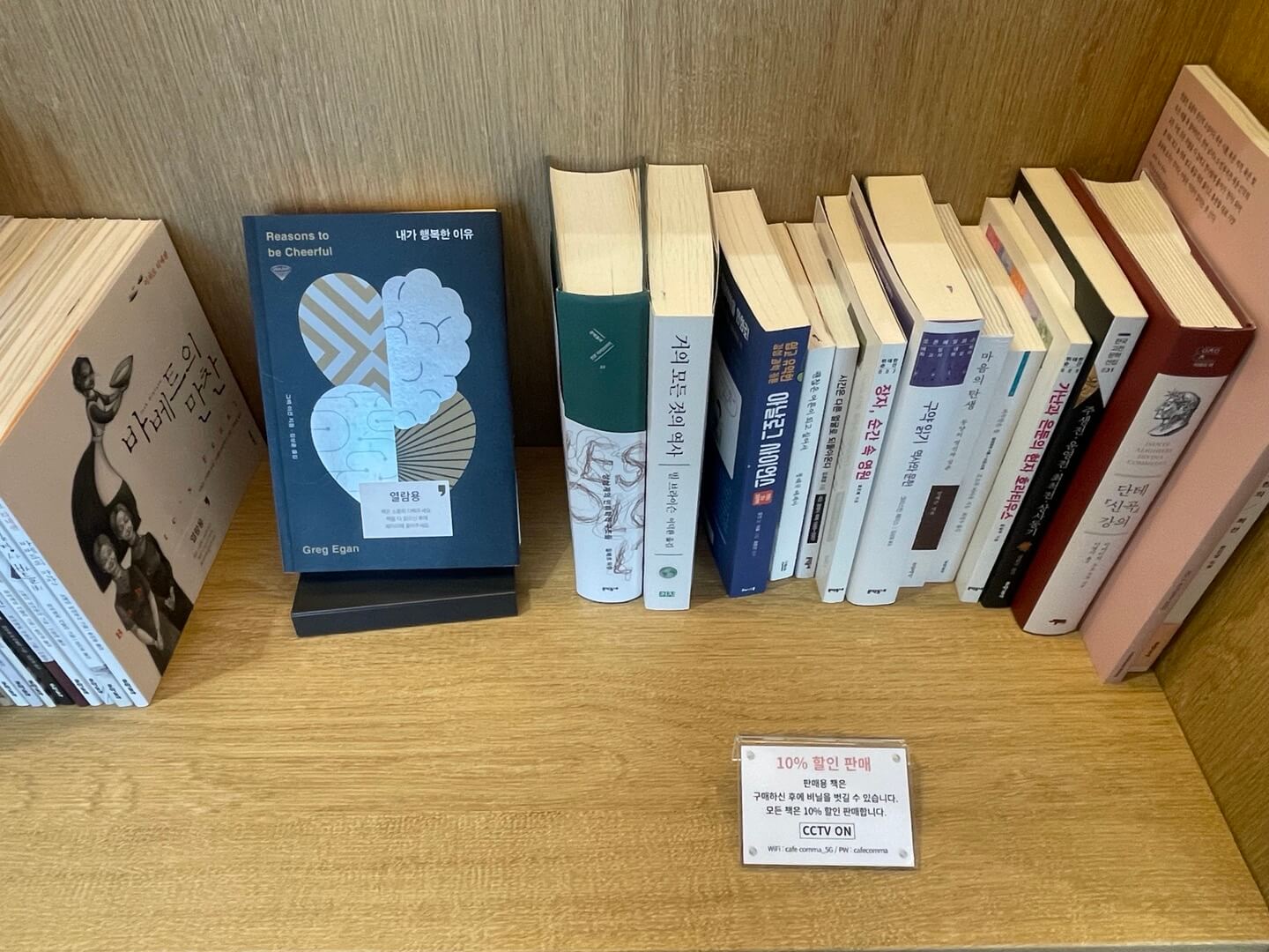 벽면 가득 진열된 책은 10% 할인된 가격으로 구매도 가능했어요